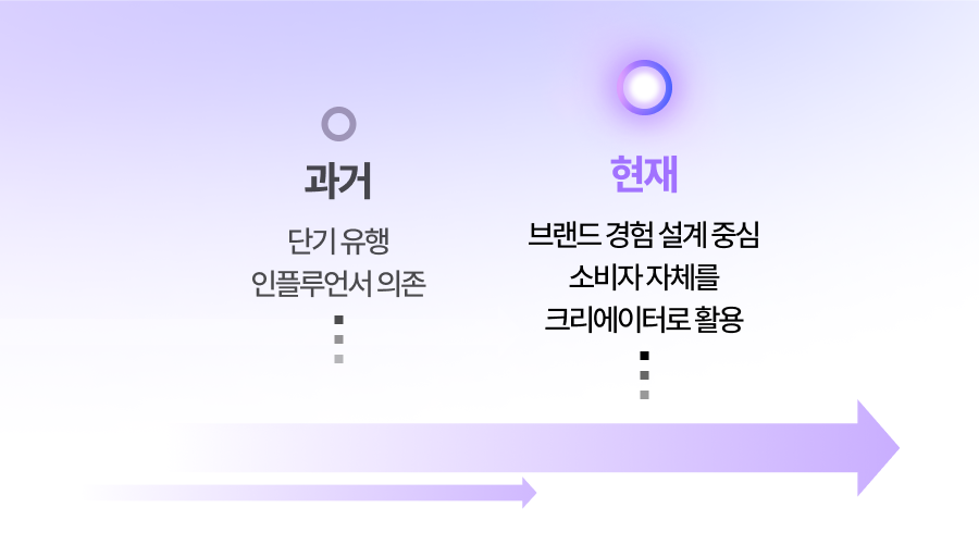 그래서 현재는 단순 실행에서 더 나아가 각 브랜드의 현황을 진단한 후 그에 맞는 전략을 기획하고 설계해 전문적인 운영에 초점을 두고 있어요. 표면적인 노출보다는 소비자에게 브랜드를 경험할 수 있게 설계하고, 소비자가 자발적으로 참여하게 만드는 것을 중요하게 여기죠. 또한, 과거 인플루언서가 콘텐츠 확산의 중심에 있었다면 지금은 소비자 한 명, 한 명이 참여하고 공유함으로써 그 행동 자체를 마케팅으로 취급해요.