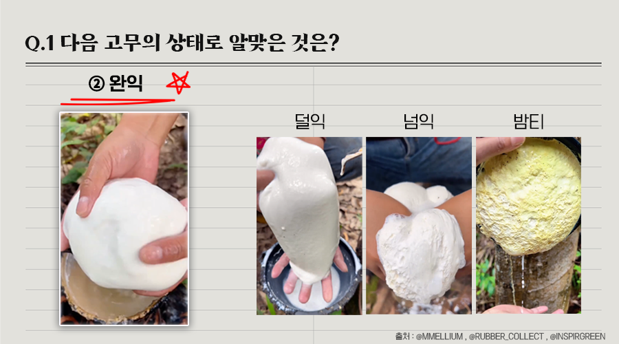 🔔 Q.1 다음 고무의 상태로 알맞은 것은? (정답 : ②완익)