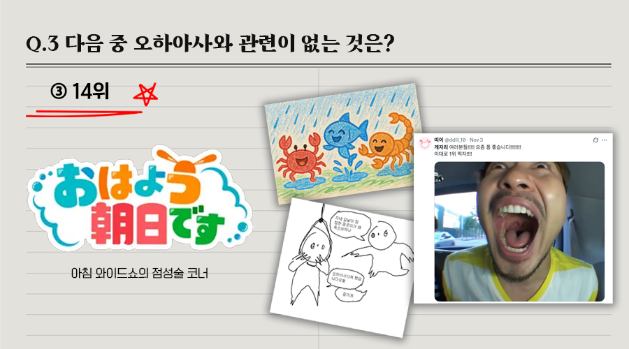 🔔 Q.3 다음 중 오하아사와 관련이 없는 것은? (정답 : ③14위)