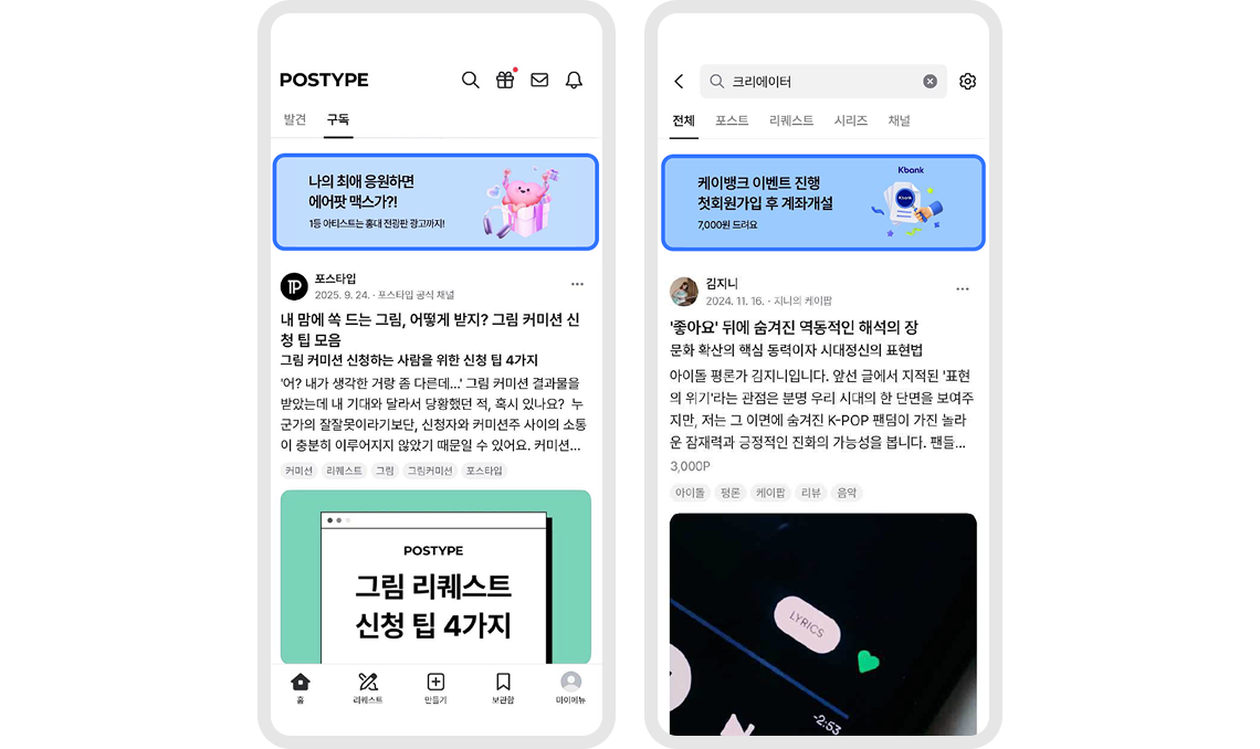 매월 12만개의 신규 포스트가 생성되는 지면에 자연스럽게 노출돼요