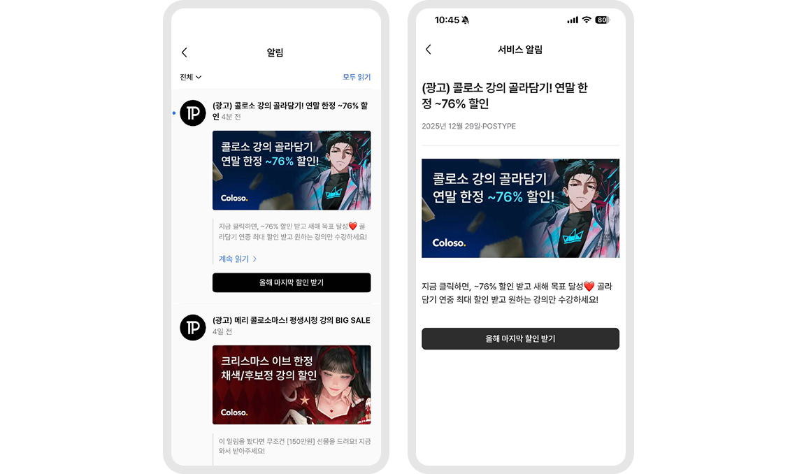 앱에 접속하지 않은 상태에서도 직접 알림을 통해 홍보할 수 있어요