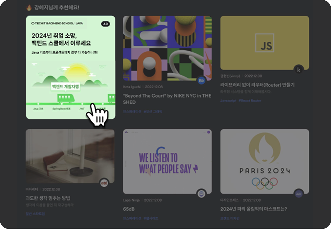 영향력 및 구매력이 높은 경력직 디자인 · 개발 · 기획 · 마케팅 직군의 사용자로 구성되어 있습니다.
