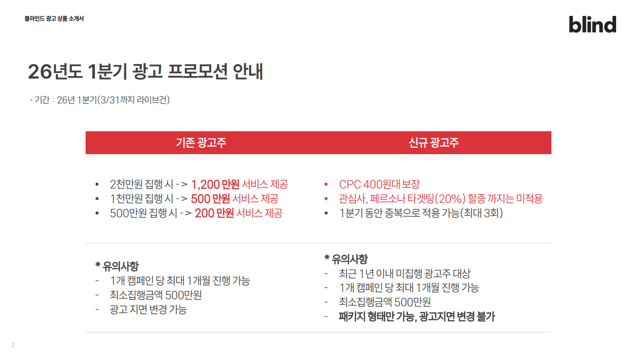 📢 블라인드 1분기 프로모션
