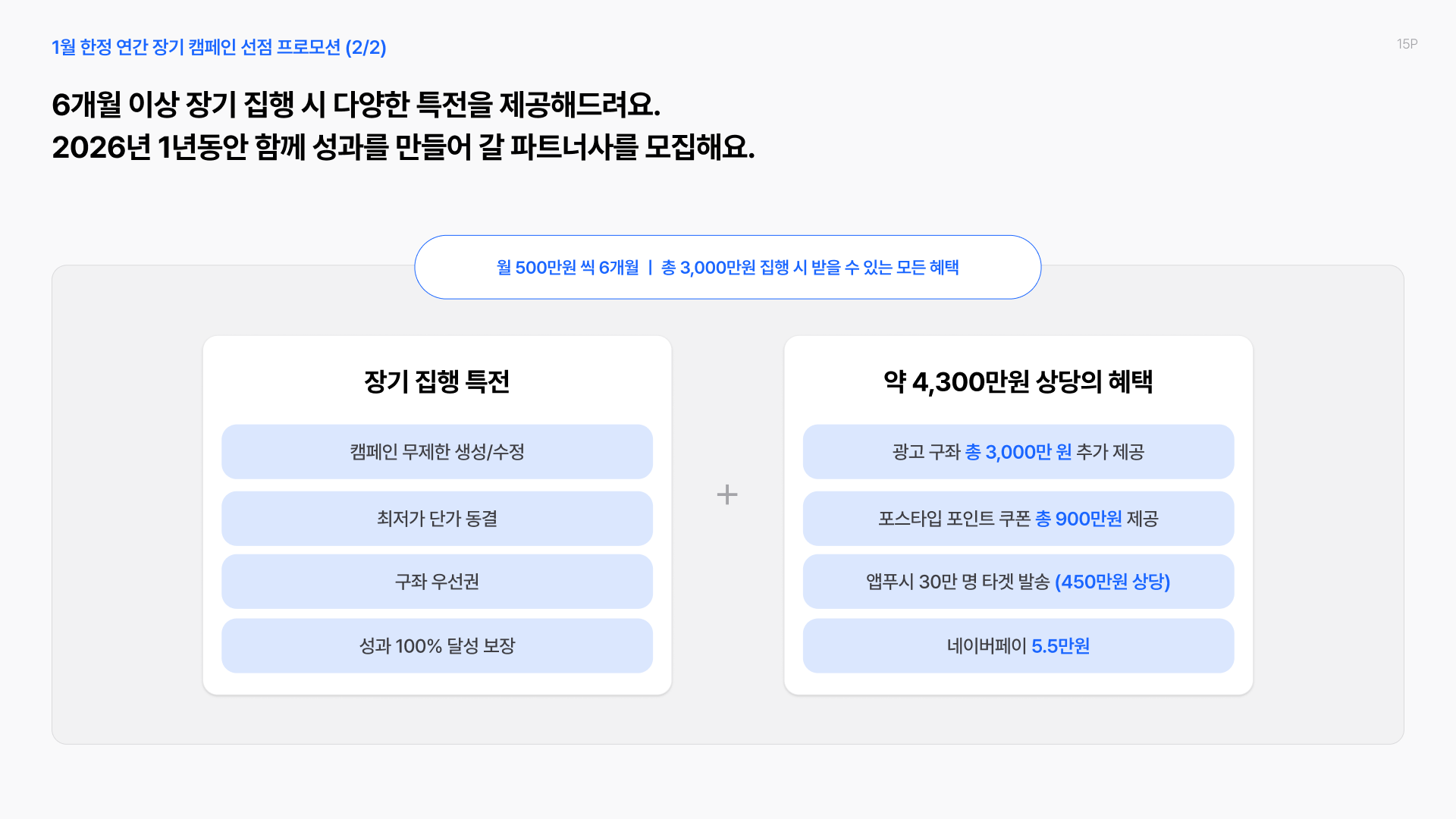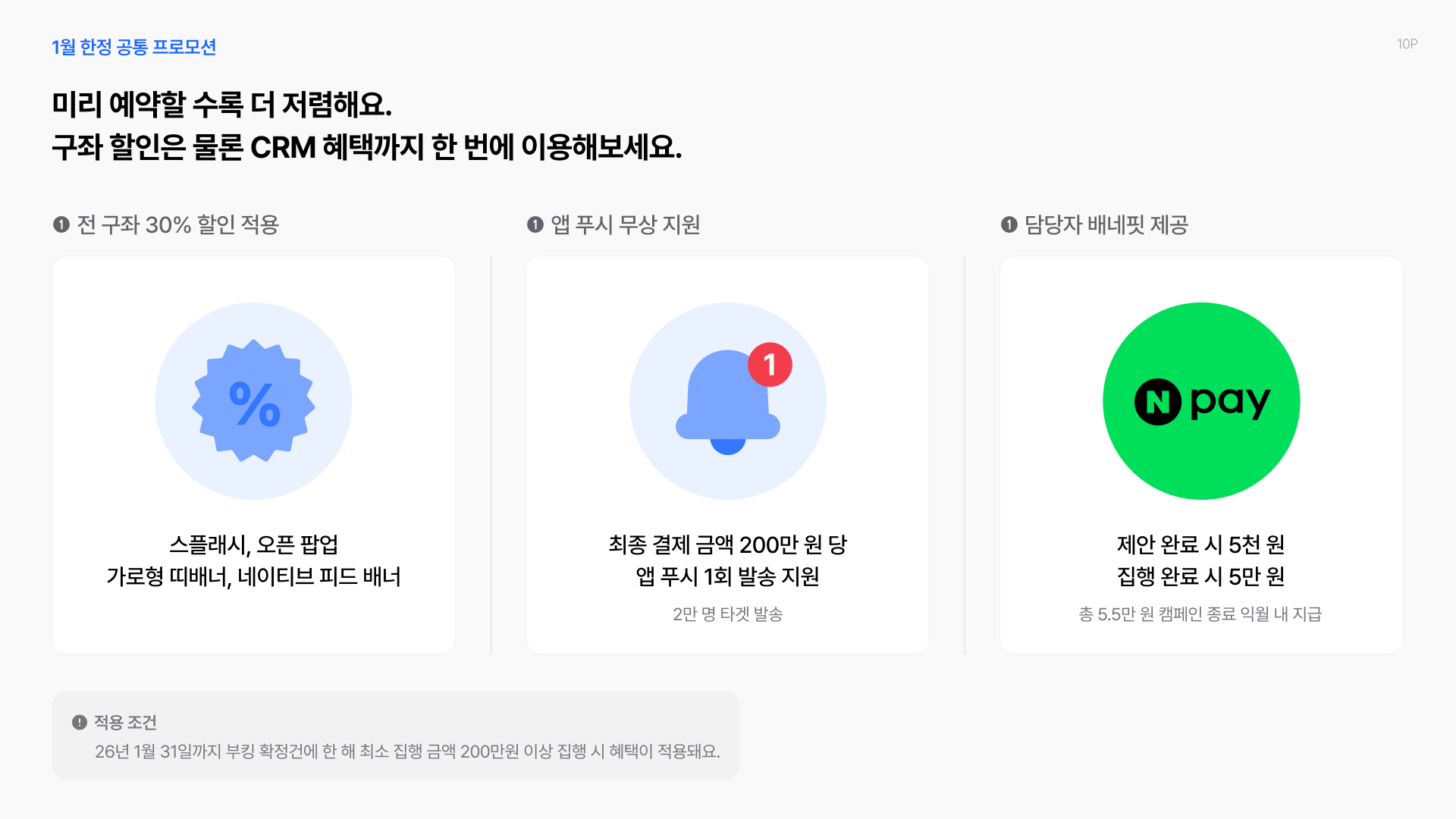 - 오픈 팝업 배너 : 타겟의 브랜드 인지를 높이고 전환 단계로 빠르게 유도합니다.