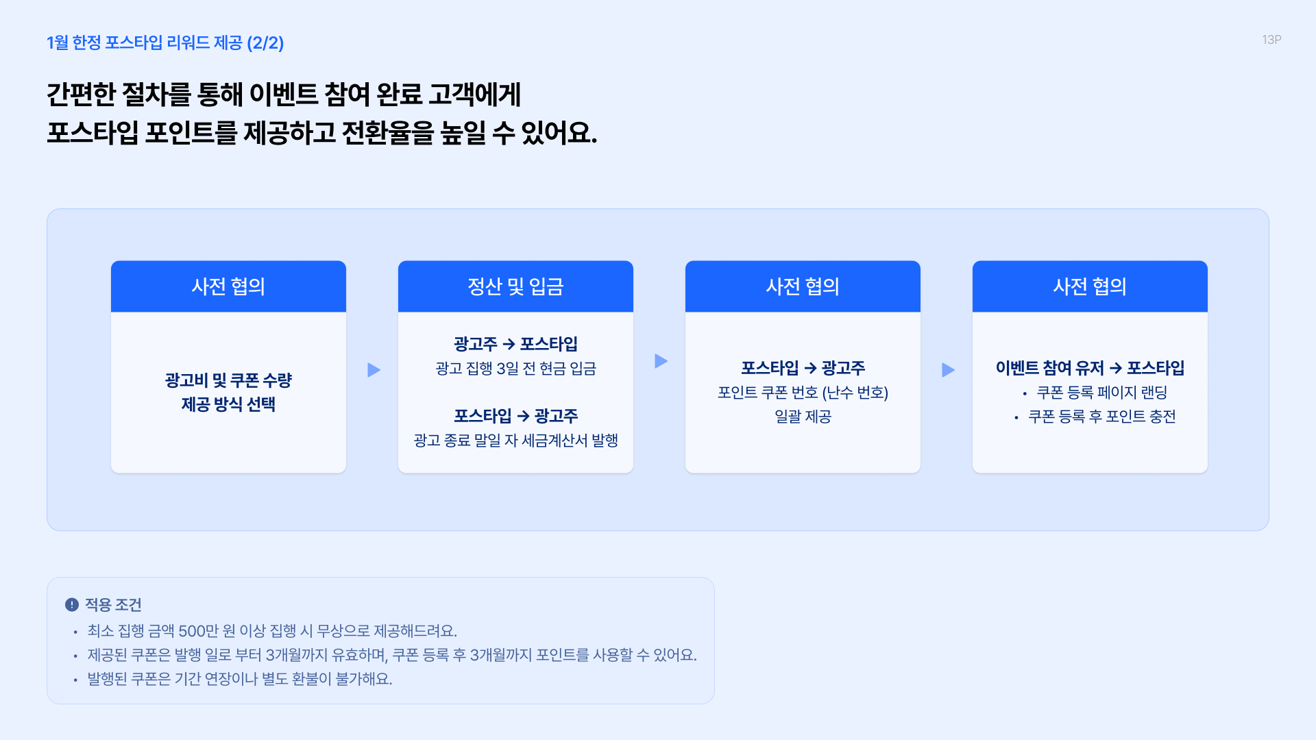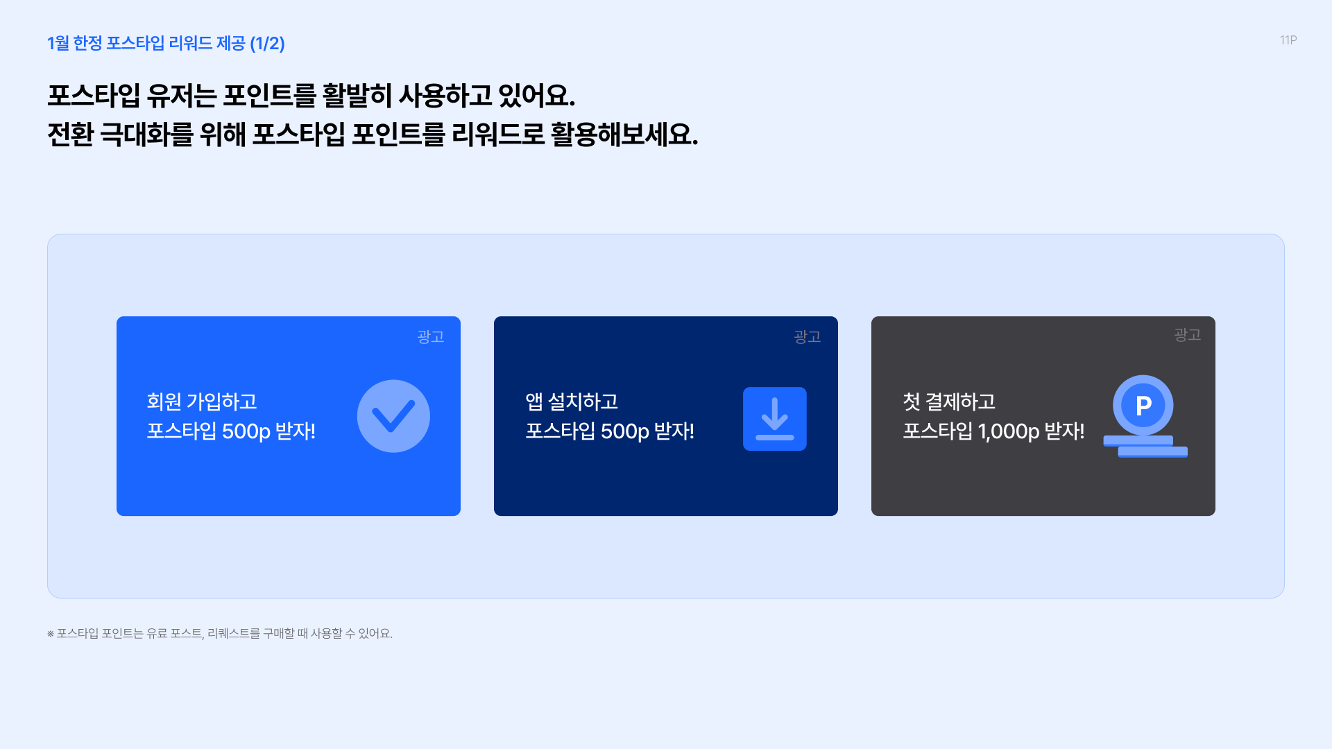 - 이벤트 포스트 : 유저의 댓글과 좋아요 반응을 자연스럽게 이끌어낼 수 있습니다.