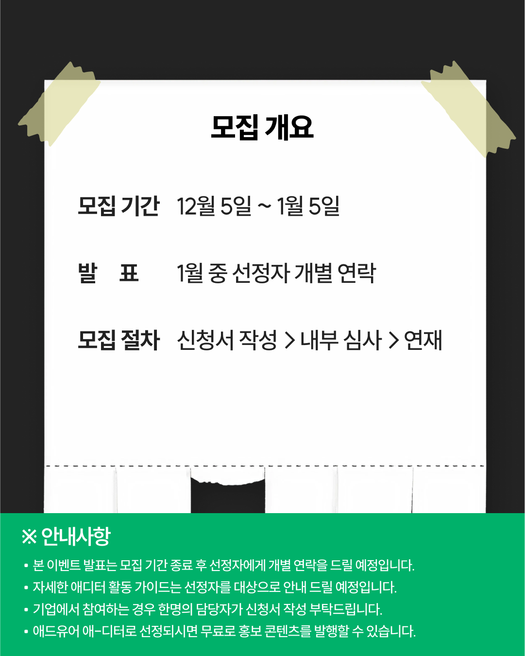 - 본 이벤트 발표는 모집 기간 종료 후 선정자에게 개별 연락을 드릴 예정입니다.