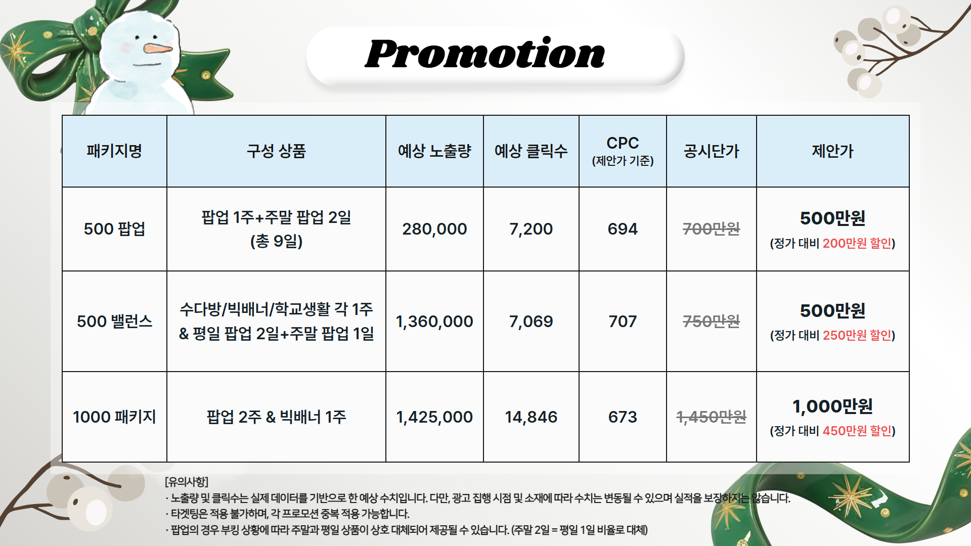 - 3만 건) 5% 추가 발송(총 31,500건) + 10% 할인(450만 원 → 405만 원)